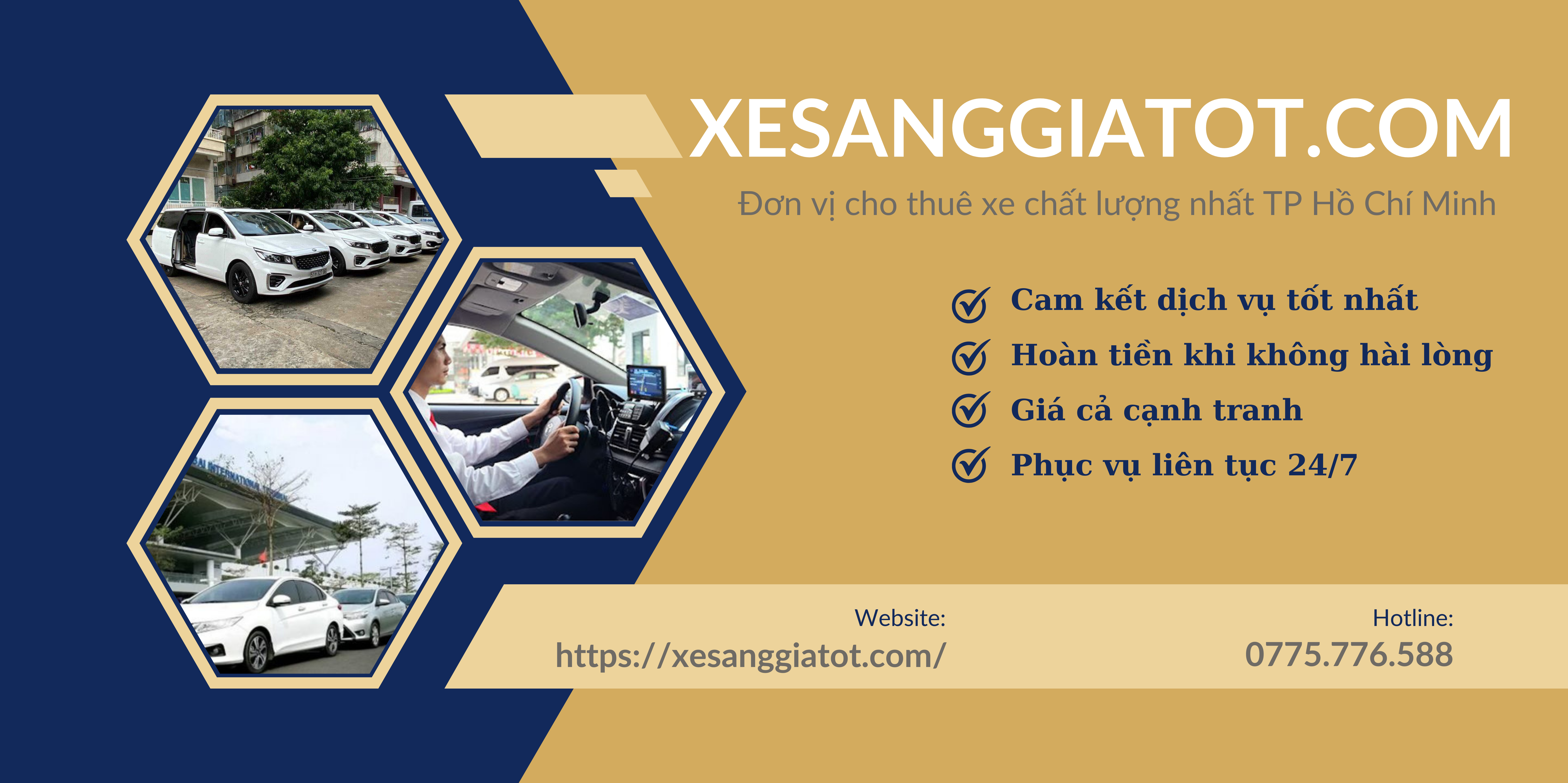 XESANGGIATOT.COM tự hào là công ty hàng đầu trong lĩnh vực cho thuê xe chất lượng cao tại TP Hồ Chí Minh. Với các dòng xe du lịch cao cấp, đời mới nhất từ xe du lịch 4 chỗ – 45 chỗ cũng như đẳng cấp sang trọng của các dòng xe vip: Limousine, Mercedes, BMW, KIA, … , XESANGGIATOT.COM tự tin mang lại cho Quý khách những chuyến đi thật hài lòng, hoàn mỹ trọn vẹn.